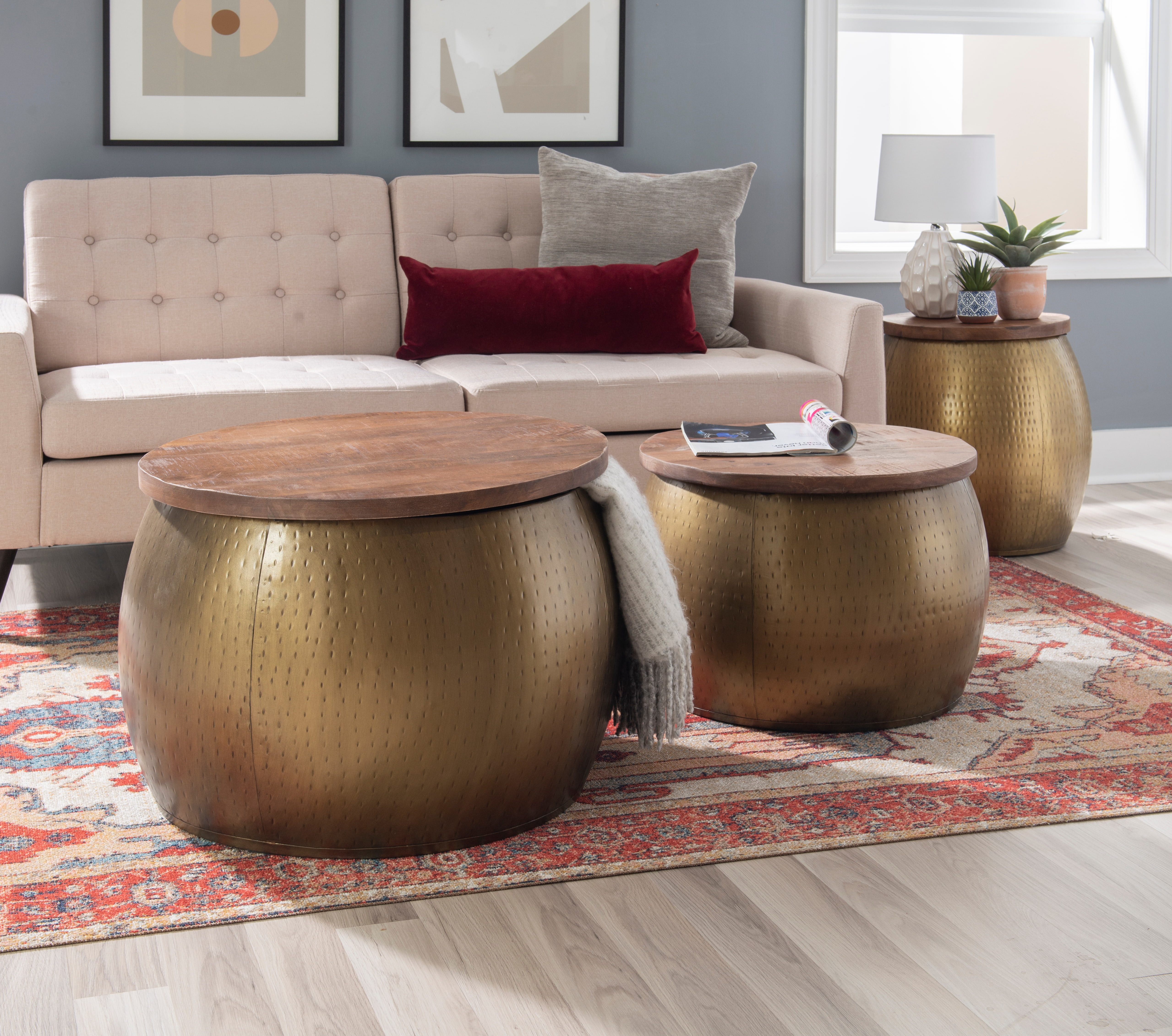 Powell Royce Hammered Iron Drum Table Large Gold With Mango Wood Top Walmart Com